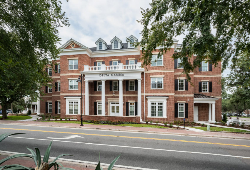Delta Gamma’s new 25,000 sf stunning house sits on a prominent corner of Sorority Row at the University of Florida.