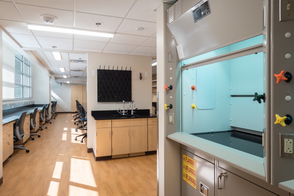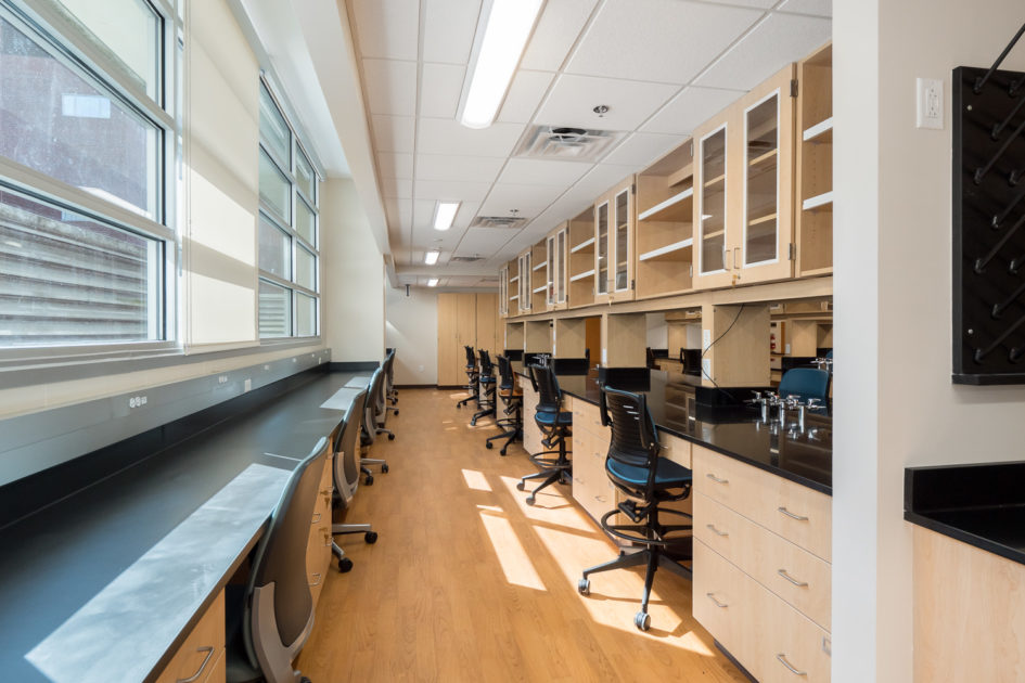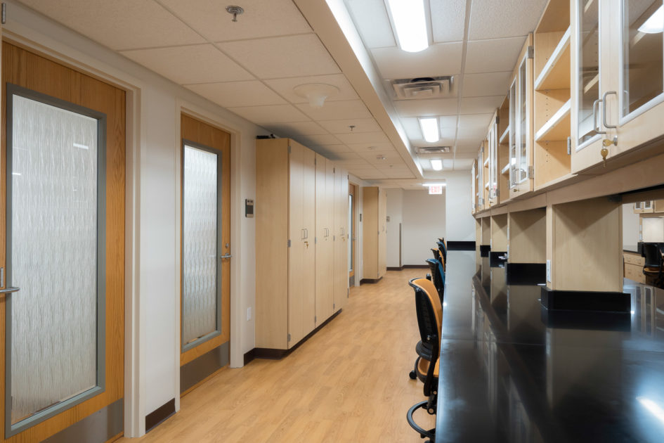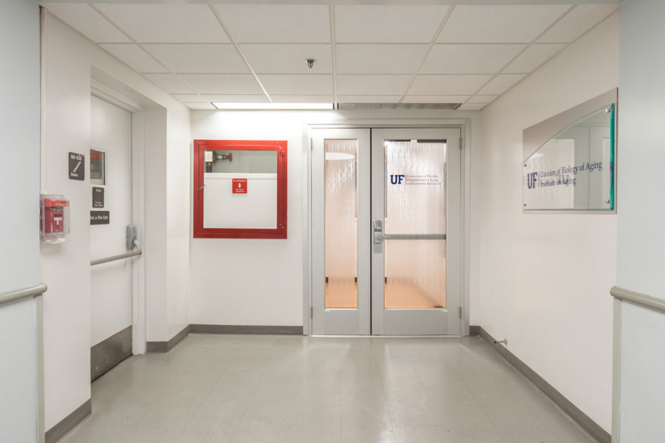 The UF Institute on Aging project involved a 3,100 s/f renovation to an existing laboratory space on the 2nd-floor at the Stetson Medical Sciences Building on UF Campus. The renovation included construction of three new offices, a conference room, a microscope room with blackout shading to be used during research, an equipment room with sufficient power to support a -80° deep freezer, two new fume hoods with air/med-gas/vacuum services, a new kitchen/break area and an approximately 1000+ SF open laboratory space with new lab casework along with replacing nearly 125 linear feet-worth of exterior storefront windows.
