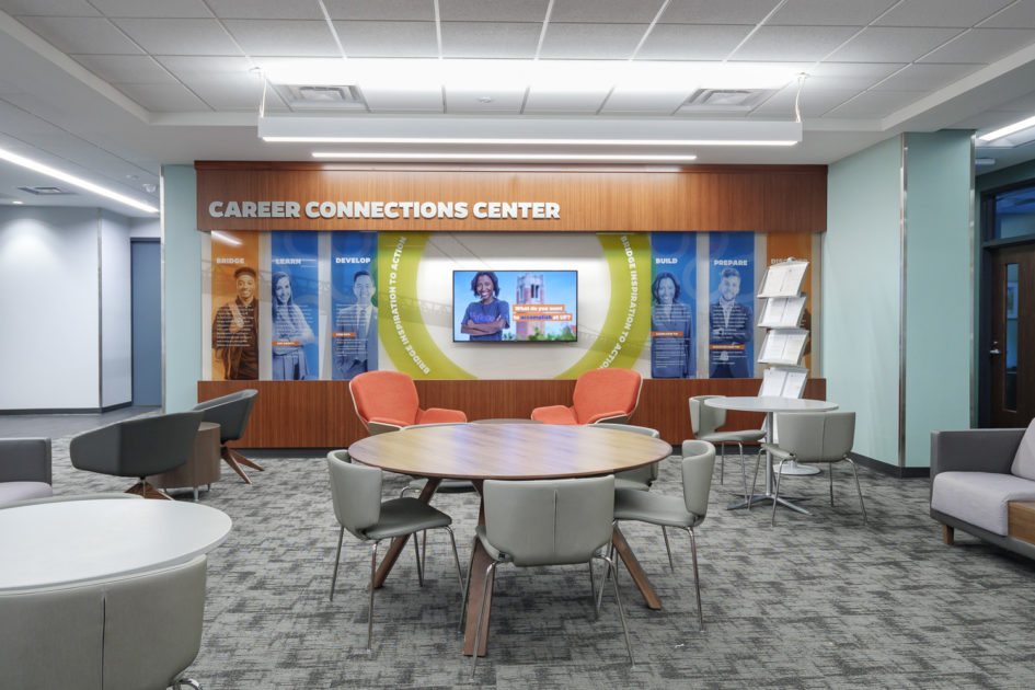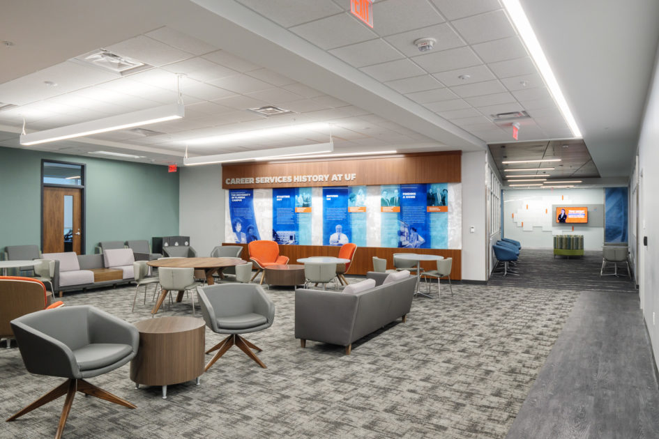 The project consisted of renovating and adding onto the Career Connections Center at the J. Wayne Reitz Union on the University of Florida main campus. UF’s Career Connections Center (CCC) is a centralized comprehensive unit providing a diverse range of services to students and alumni seeking employment and serves as a bridge from the education experience to the work world.