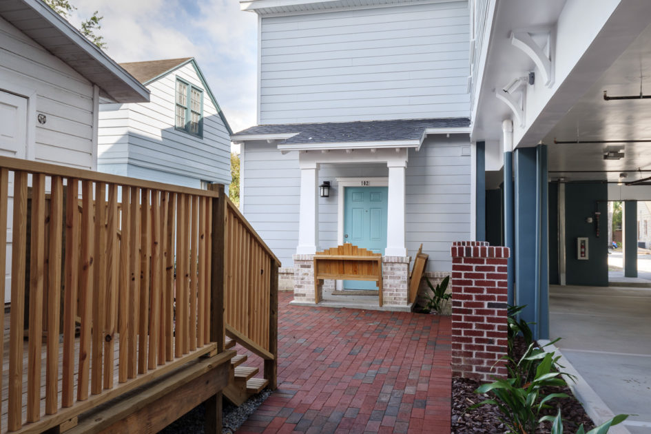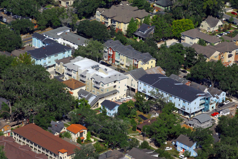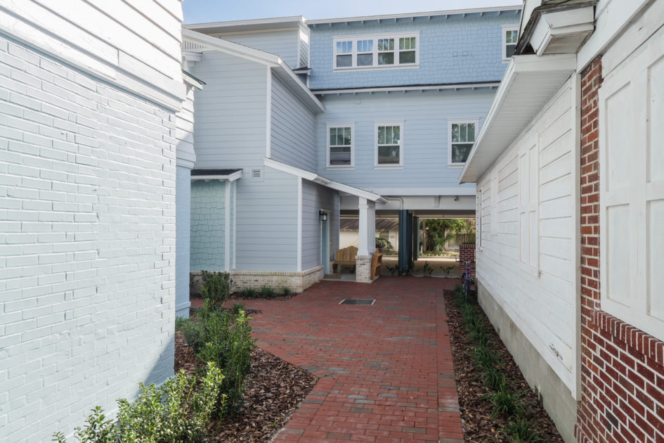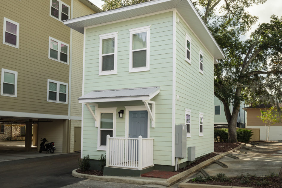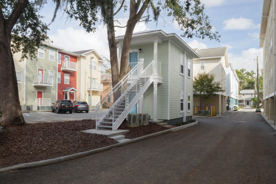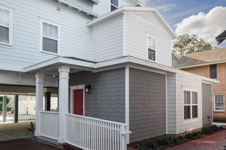 Woodbury Apartments is a three-building 35 unit luxury apartment project located adjacent to the University of Florida campus. The units offer 59 bedrooms with high-end finishes and kitchen and baths that include Hardwood Shaker cabinets with imported quartz tops, stainless steel energy efficient appliances, en-suite washer and dryers included. These units feature ceramic tile floors in all living areas, carpeted bedrooms, and decorative base molding throughout. The architectural style of the buildings is closely coordinated with the City of Gainesville Historic Review Board to maintain consistency with the look and feel of the University Heights Historic District.